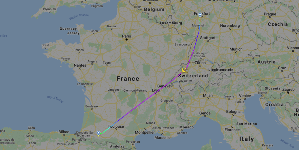 Dziś rano gigant przestworzy wzbił się w niebo po raz ostatni o godzinie 07:45, choć było to godzinę po planowanym czasie odlotu. Z frankfurckiego pasa startowego nr 18 samolot poleciał do Tarbes we Francji jako LH 9880, gdzie wylądował o 09:11. Tarbes jest jednym z dwóch miejsc, gdzie do tej pory złomowano A380, wraz z Knock w Irlandii, gdzie złomowano A380 linii Air France.